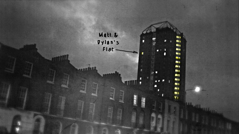 Camera Maping: Low res image taken from the web is map onto simple geometry and re-lite and animated for film resolution. This examble show Peter Sutcliffe house.